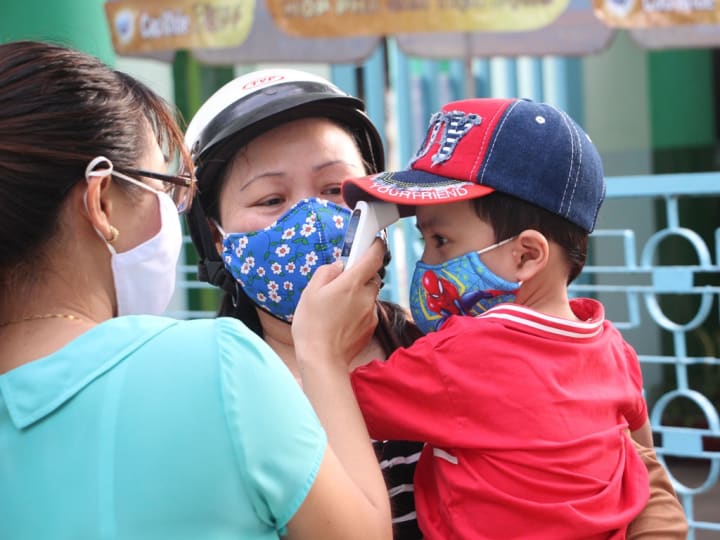 Ngoài ra, trước khi đi học, ba mẹ cũng nên kiểm tra thân nhiệt của con, quan sát con có các biểu hiện như ho, đau họng, khó thở,... hay không và thông báo cho nhà trường, cơ sở y yế. Điều này để đảm bảo trẻ có mắc Covid-19 không hay chỉ cảm cúng thông thường và tránh lây lan dịch bệnh cho các bạn trong lớp và trường học.