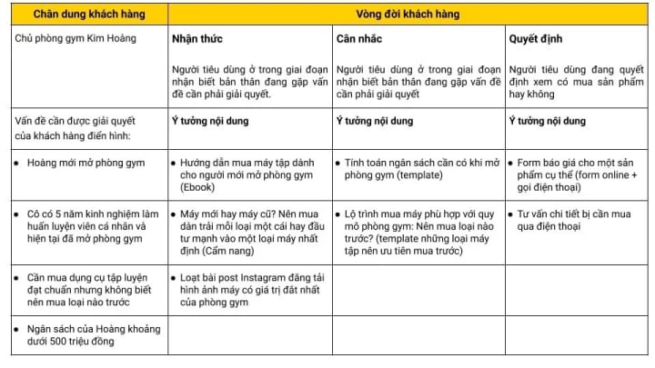 Bước 3: Xác định content phù hợp với từng giai đoạn