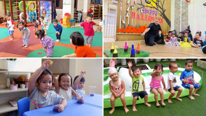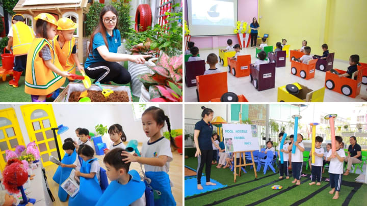 Với phương châm “Mỗi trẻ đều có cơ hội phát triển”, nhà trường mong muôn khai phá tiềm năng tối đa và phát triển tình yêu thực sự với việc học tập ngay từ nhỏ cho trẻ. Tại đây, bé được học Tiếng Anh với thầy cô giáo nước ngoài mỗi ngày - giúp con dần hình thành khả năng nghe và giao tiếp Tiếng Anh tương đương với ngôn ngữ mẹ đẻ. Bên cạnh đó, trẻ phát triển tư duy, trí tuệ bằng phương pháp Toán trí tuệ Nhật Bản và phát triển thể chất qua các môn aerobic, võ thuật,... Chương trình học được thiết kế khoa học, đa dạng đảm bảo hành trang giúp trẻ bước đi một cách vững vàng trong các bậc học tiếp theo và trọn đời.