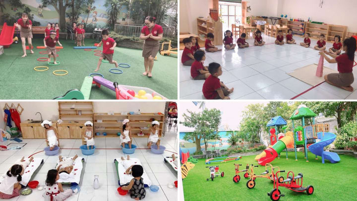 Đội ngũ giáo viên yêu trẻ, có trình độ chuyên môn cao cùng nhiều năm kinh nghiệm, năng động. Cha mẹ hoàn toàn yên tâm khi gửi con đến trường bởi hệ thống Camera giám sát trực tuyến, phòng học, khu vui chơi, thư viện hiện đại, rộng rãi, an toàn.