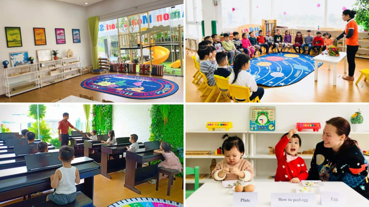 Trường vận dụng chương trình học hiện đại phù hợp với lứa tuổi mầm non - Phương pháp STEAM, dạy học theo dự án trải nghiệm đa giác quan, Glenn Doman kết hợp với chương trình hoạt động phát triển thể lực. Các bé còn được học tiếng Anh với người bản xứ ngay từ khi còn sớm để rèn luyện khả năng phát âm, tư duy ngôn ngữ. Chế độ dinh dưỡng được xây dựng bởi các chuyên gia giúp bé phát triển toàn diện. Không chỉ đảm bảo dinh dưỡng trường còn đảm bảo về mặt vị giác khi bữa ăn được thay đổi linh hoạt, phong phú.