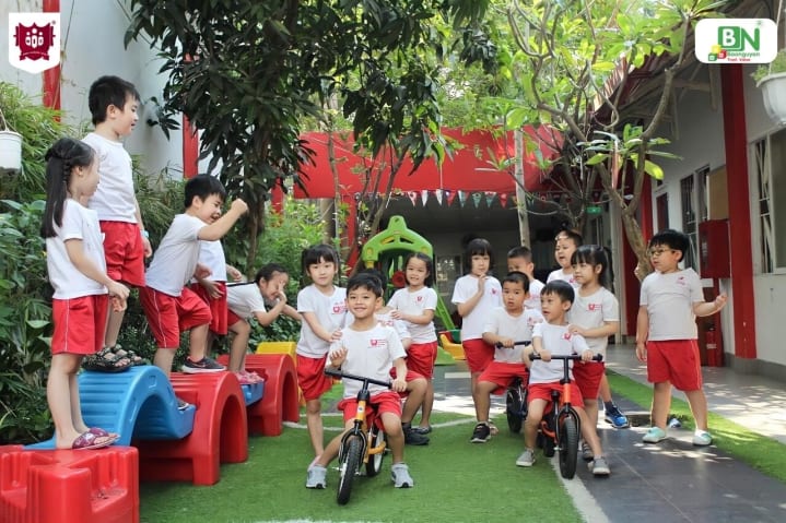 Trong khuôn viên xanh ngập tràn ánh nắng nơi trẻ sẽ tham gia hoạt động mỗi ngày