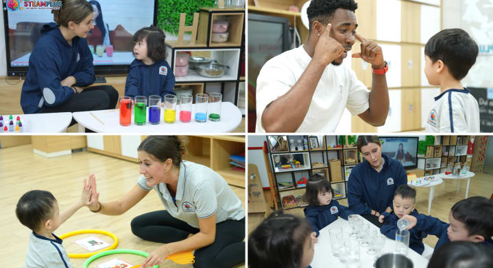Một điểm nổi bật tại Trường Mầm Non STEAMPlus là chương trình Tiếng Anh chuẩn quốc tế. Trẻ sẽ được tiếp xúc với tiếng Anh ngay từ khi còn bé, giúp phát triển khả năng giao tiếp và hình thành nền tảng ngôn ngữ vững chắc.