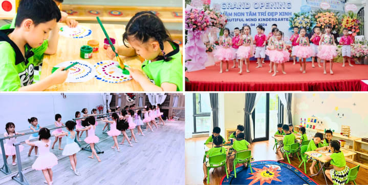 Với triết lý giáo dục "Không nhồi nhét kiến thức, mà thầy cô là người khơi dậy ngọn lửa cho tâm hồn và trí tuệ trẻ, Trường Mầm non Beautifulmind kindergarten sở hữu chương trình song ngữ là kết hợp của nhiều phương pháp giáo dục hàng đầu với định hướng Montessori. Phương pháp này giúp trẻ phát triển tài năng, kích thích khả năng ghi nhớ và sự thông minh. Ngoài giờ học chính, trẻ còn được tham gia các hoạt động nghệ thuật, rèn luyện thể chất như Toán tư duy, Mỹ thuật, Kỹ năng sống, Cooking, Thí nghiệm khoa học, và Múa.